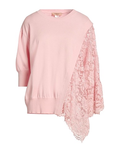 knitted, lace, lightweight knit, brand logo, plain colour, crewneck, 3/4 length sleeves, hand wash or dry clean, do not bleach, do not tumble dry