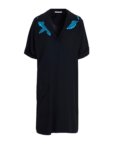 dress, crepe, plain colour with appliqués, embroidered, lapel collar, short sleeves, fully lined