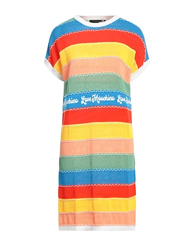 knitted, lightweight knit, brand logo, stripes, multicolour pattern, crewneck, short sleeves, unlined, no pockets, dress