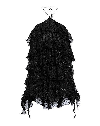 crepe, lamé, tiers, polka-dot, v-neck, sleeveless, fully lined, self-tie closure, no pockets, trapeze style