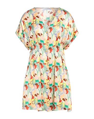 satin, darts, multicolour, v-neck, short sleeves, unlined, button fastenings, multipockets, shirt dress