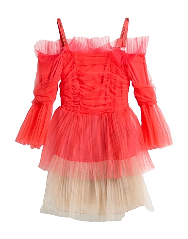 tulle, stretchy fabric, two-tone, gathered, scoop neckline, short sleeves, fully lined, zip fastening, machine wash or dry clean, do not bleach, do not tumble dry
