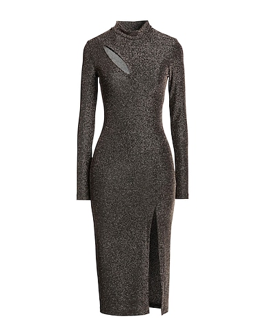 bodycon dress, jersey, metallic, stretchy fabric, plain colour, brand logo, cutout, mock neck, long sleeves, unlined, front slit, hand wash, do not bleach, do not tumble dry, do not iron, amp up the glamour with chic designer party outfits for your next event or fun night out