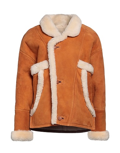 shearling jacket, shearling, leather trims, two-tone, classic collar, single-breasted , long sleeves, shoulder pads, lined in shearling, button fastenings, snap fastenings, multipockets, contains non-textile parts of animal origin, specialist clean or dry clean, do not tumble dry