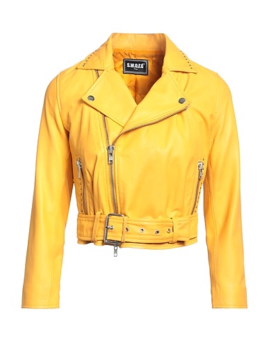 leather, studs, strap detailing, solid colour with appliqués, lapel collar, single-breasted , long sleeves, zipped cuffs, fully lined, zipper closure, multipockets, pocket with zip, contains non-textile parts of animal origin, biker style