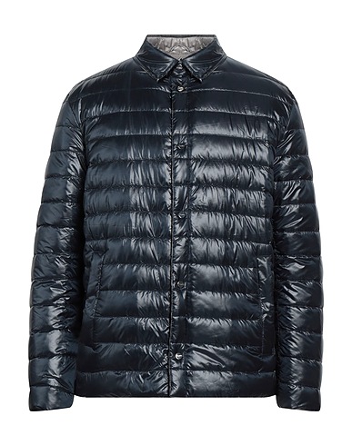 down jacket, shell, double face, brand logo, plain colour, long sleeves, goose down interior, lightweight padding, snap fastenings, slit pockets, contains non-textile parts of animal origin, hand wash, do not bleach, do not tumble dry
