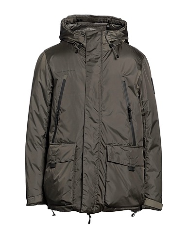 down jacket, shell, brand logo, plain colour with appliqués, hooded, long sleeves, duck down filling, lightweight padding, zip fastening, snap fastenings, flap pockets, zipped pockets, contains non-textile parts of animal origin, machine wash, do not bleach, do not tumble dry, do not iron