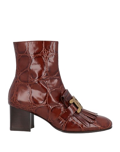 leather, crocodile print, brand logo, fringes, solid colour with appliqués, leather backing, zipper closure, round toeline, square heel, covered heel, rubber sole, contains non-textile parts of animal origin, ankle boots