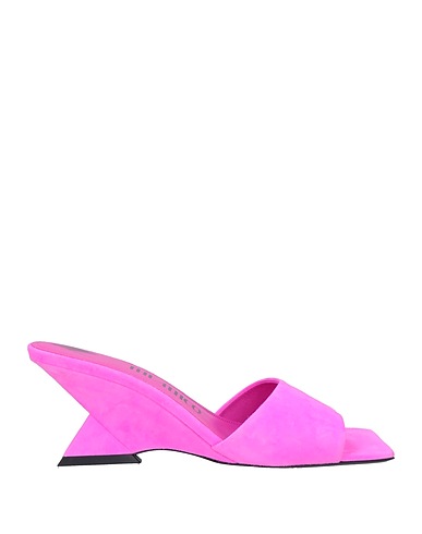 slide sandals, suede, no appliqués, plain colour, leather lining, square toe, wedge heel, leather sole, contains non-textile parts of animal origin