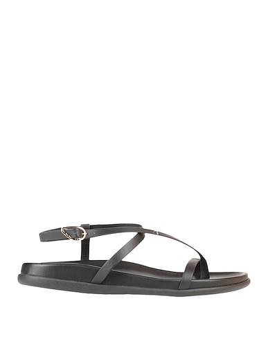 thong sandals, synthetic material, plain colour, no appliqués, buckle-fastening ankle strap, round toe, rubber sole, unlined