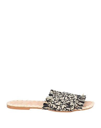 raffia, fringes, two-tone, leather lining, square toeline, flat, rubber sole, contains non-textile parts of animal origin, slide sandals