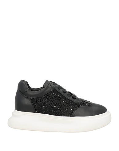 low-top trainers, leather, plain colour with appliqués, crystals, brand logo, lace-up, round toe, wedge, rubber sole, leather lining, contains non-textile parts of animal origin