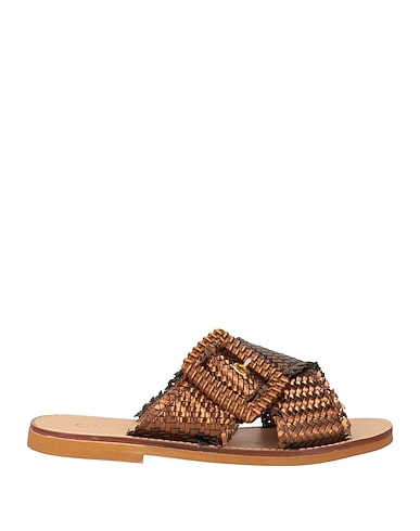 coated fabric, metallic, no appliqués, plain colour, leather lining, round toe, flat, rubber sole, contains non-textile parts of animal origin, sandals