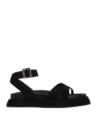thong sandals, suede, plain colour, no appliqués, buckle-fastening ankle strap, round toe, flat, rubber sole, leather lining, contains non-textile parts of animal origin