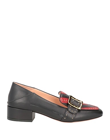 leather, buckle, studs, two-tone, leather lining, round toe, low heel, leather sole, contains non-textile parts of animal origin, loafers