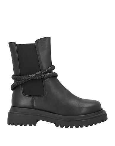 ankle boots, leather, plain colour, crystals, leather lining, zip fastening, round toe, square heel, rubber cleated sole, contains non-textile parts of animal origin
