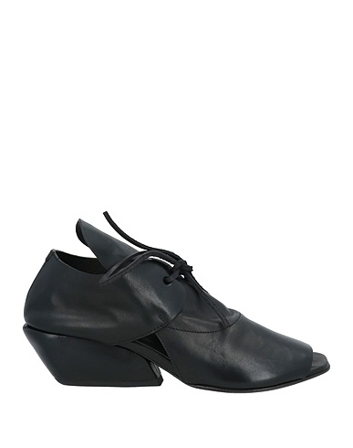 open-toe ankle boots, leather, plain colour, no appliqués, leather lining, lace-up, round toe, square heel, leather sole, contains non-textile parts of animal origin, large sized