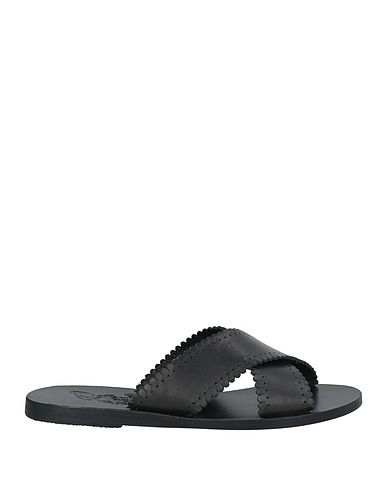 sandals, leather, plain colour, no appliqués, leather lining, round toe, flat, leather/rubber sole, handmade, contains non-textile parts of animal origin