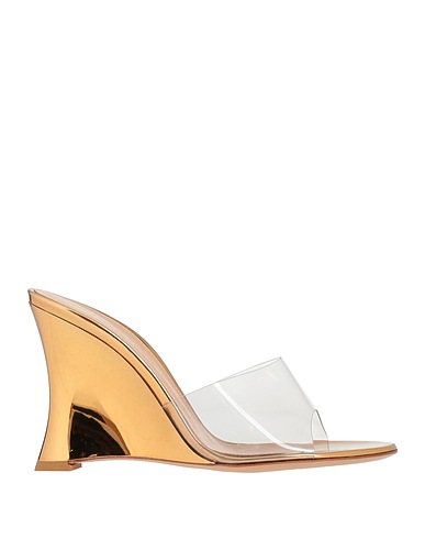 slide sandals, plastic, plain colour, no appliqués, leather lining, round toe, wedge heel, leather sole, contains non-textile parts of animal origin