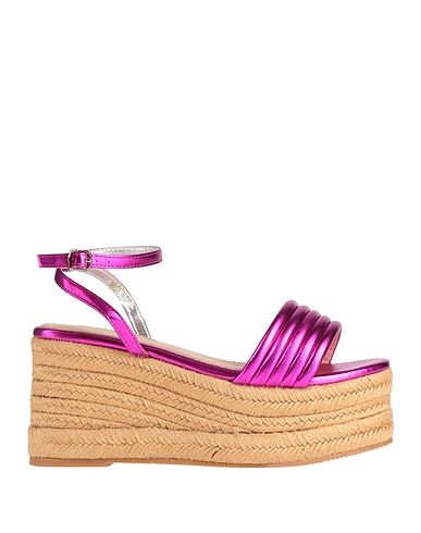 espadrille sandals, coated fabric, plain colour, no appliqués, fully lined, buckle-fastening ankle strap, round toe, wedge heel, rubber cleated sole