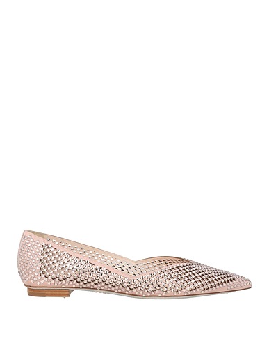 ballet flats, satin, perforated, plain colour with appliqués, crystals, leather lining, pointed toe, flat, leather sole, contains non-textile parts of animal origin