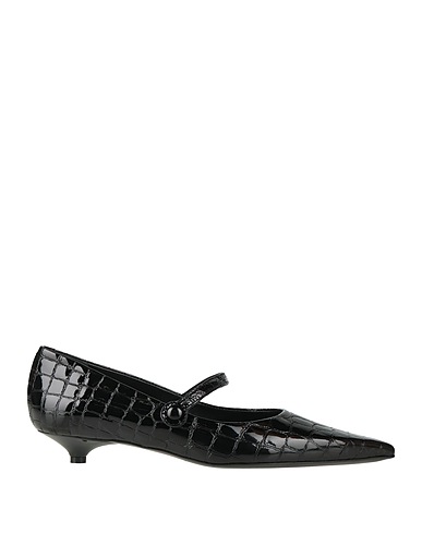 mary jane flats, patent leather, crocodile-print, no appliqués, leather lining, buckle fastening, pointed toe, flat, leather/rubber sole, contains non-textile parts of animal origin, large sized