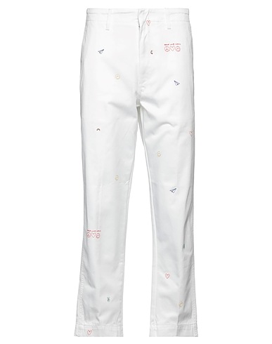 gabardine, brand logo, embroidered detailing, plain colour with appliqués, high waisted, tapered leg, regular fit, zipper closure, hook-and-eye closure, multipockets, contains non-textile parts of animal origin, chinos