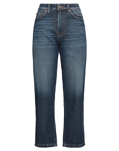 denim, faded, brand logo, plain colour, dark wash, high waisted, tapered leg, regular fit, zipper closure, 1 button, five pockets, mom-cut model
