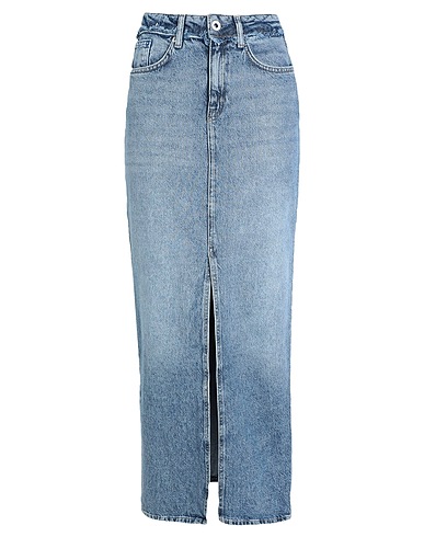 denim, faded, brand logo, plain colour, medium wash, belt loops, regular fit, zip fastening, 1 button, front slit, five pockets, contains non-textile parts of animal origin, pencil style