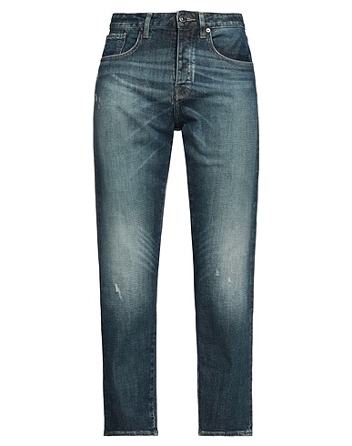 denim, faded, distressed, brand logo, leather trims, plain colour, medium wash, high waisted, belt loops, tapered leg, regular fit, button fastenings, five pockets, stretch, contains non-textile parts of animal origin, tapered model