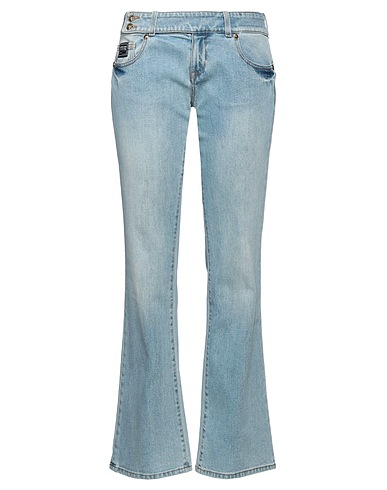 denim, studs, brand logo, plain colour, light wash, mid rise, belt loops, flared cut, regular fit, button fastenings, multipockets, stretch, small sized, flare & wide-leg