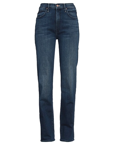 straight-leg jeans, denim, distressed, plain colour, brand logo, dark wash, high waisted, belt loops, regular fit, zip fastening, 1 button, multipockets, machine wash or dry clean, do not bleach, tumble dry, model: the kick it