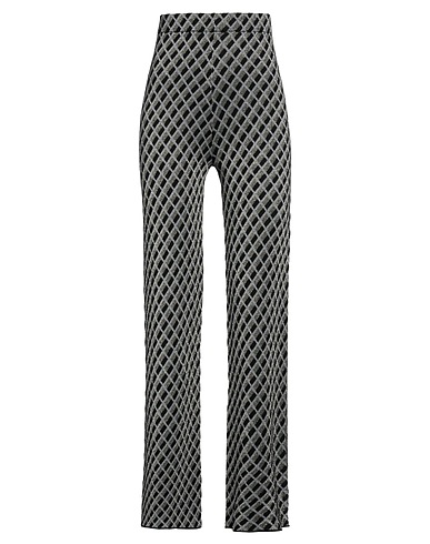straight-leg trousers, knitted, metallic, medium-weight knit, geometric-print, no appliqués, high waisted, elasticised waist, regular fit, without pockets, hand wash or dry clean, do not bleach, do not tumble dry, cropped