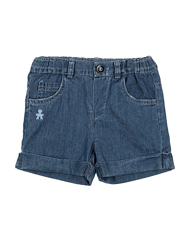chambray, plain colour, embroidered logo, elasticised waist, 1 button, folded hem, multipockets, machine wash or dry clean, do not bleach, do not tumble dry