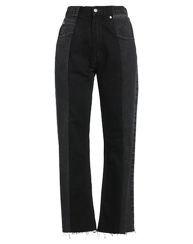 straight-leg jeans, denim, two-tone, brand logo, coloured wash, high waisted, belt loops, regular fit, 1 button, zip fastening, pockets, hand wash or dry clean, do not bleach, do not tumble dry