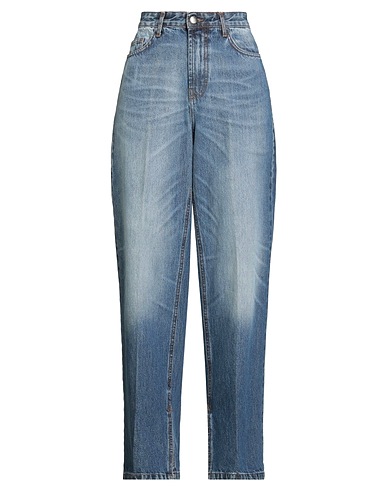 wide-leg jeans, denim, faded, plain colour, brand logo, dark wash, high waisted, belt loops, regular fit, 1 button, zip fastening, side slit hemline, multipockets, machine wash or dry clean, do not tumble dry
