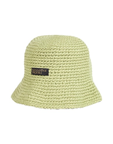 bucket hat, knitted, lightweight knit, plain colour, brand logo, unlined, do not wash, do not bleach, do not tumble dry