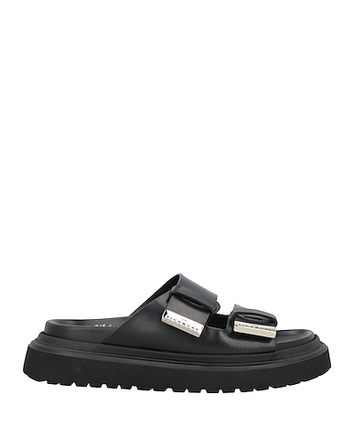 technical sandals, leather, plain colour, brand logo, leather lining, buckle fastening, round toe, flat, lug sole, contains non-textile parts of animal origin
