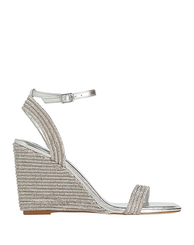 ankle strap sandals, leather, metallic, plain colour with appliqués, crystals, unlined, buckle-fastening ankle strap, square toe, wedge heel, rubber sole, contains non-textile parts of animal origin