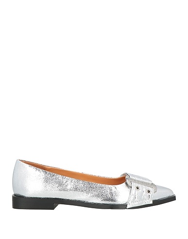 ballet flats, leather, metallic, plain colour with appliqués, brand logo, fully lined, pointed toe, flat, rubber sole
