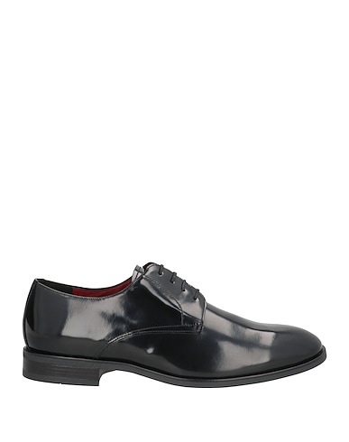 derby shoes, glossed-leather, plain colour, no appliqués, leather lining, round toe, flat, rubber cleated sole, contains non-textile parts of animal origin
