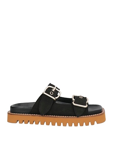 technical sandals, leather, plain colour, no appliqués, leather lining, buckle fastening, square toe, flat, rubber cleated sole, contains non-textile parts of animal origin