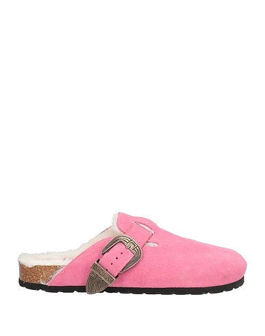 clogs, suede, plain colour with appliqués, buckle, round toe, flat, rubber cleated sole, plush lining, contains non-textile parts of animal origin