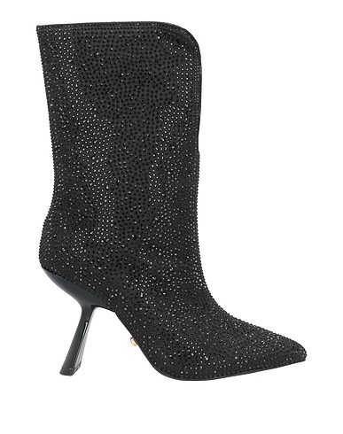 ankle boots, satin, plain colour with appliqués, crystals, fully lined, pointed toe, geometric heel, rubber sole