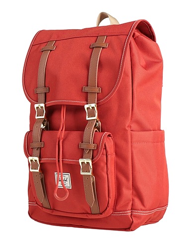 rucksack with flap, canvas, plain colour, brand logo, drawstring fastening, magnetic fastening, internal pocket, external pockets, medium size