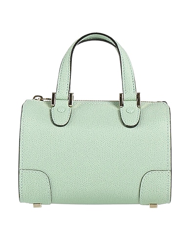bowler bag, textured-leather, plain colour, brand logo, zip fastening, fully lined, double handle, detachable shoulder strap, small size, contains non-textile parts of animal origin