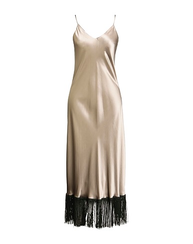 nightshirt, satin, plain colour with appliqués, fringes, deep neckline, sleeveless, do not bleach, hand wash, do not tumble dry