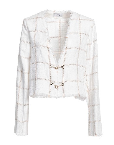tweed, lamé, no appliqués, checked, deep neckline, single-breasted , long sleeves, unlined, frogs, no pockets, single-breasted jacket, large sized
