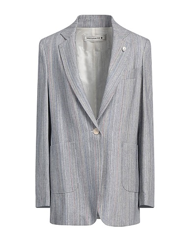 single-breasted blazer, woven, metallic, striped, brooch, lapel collar, long sleeves, fully lined, 1 button, multipockets, dry clean, do not bleach, do not tumble dry