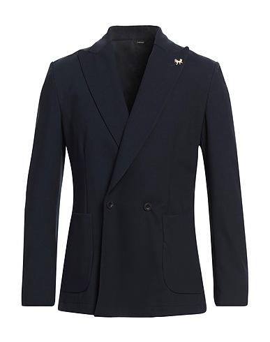 double-breasted blazer, flannel, plain colour, brooch, lapel collar, long sleeves, partially lined, button fastenings, multipockets, stretch, dry clean, do not bleach, do not tumble dry